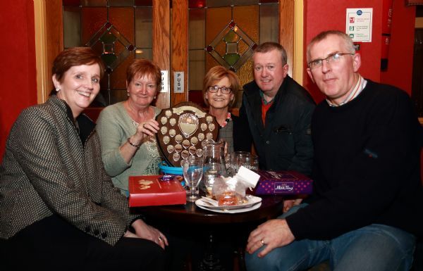 Therese Mullaghan rounded off proceedings by presenting the Mullaghan Family Shield for the Annual Charity Quiz to the winning team captain Paddy McLernon on behalf of ‘A Bridge to Far’.