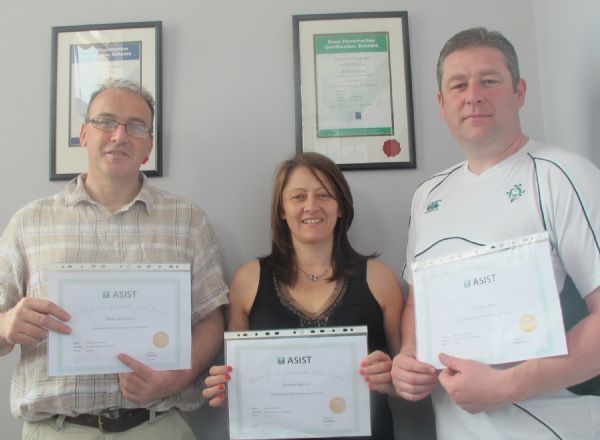 Terry Hasson, Sharon Kearns and Dominic Kelly are pictured here recieving their ASSIT Certificates.